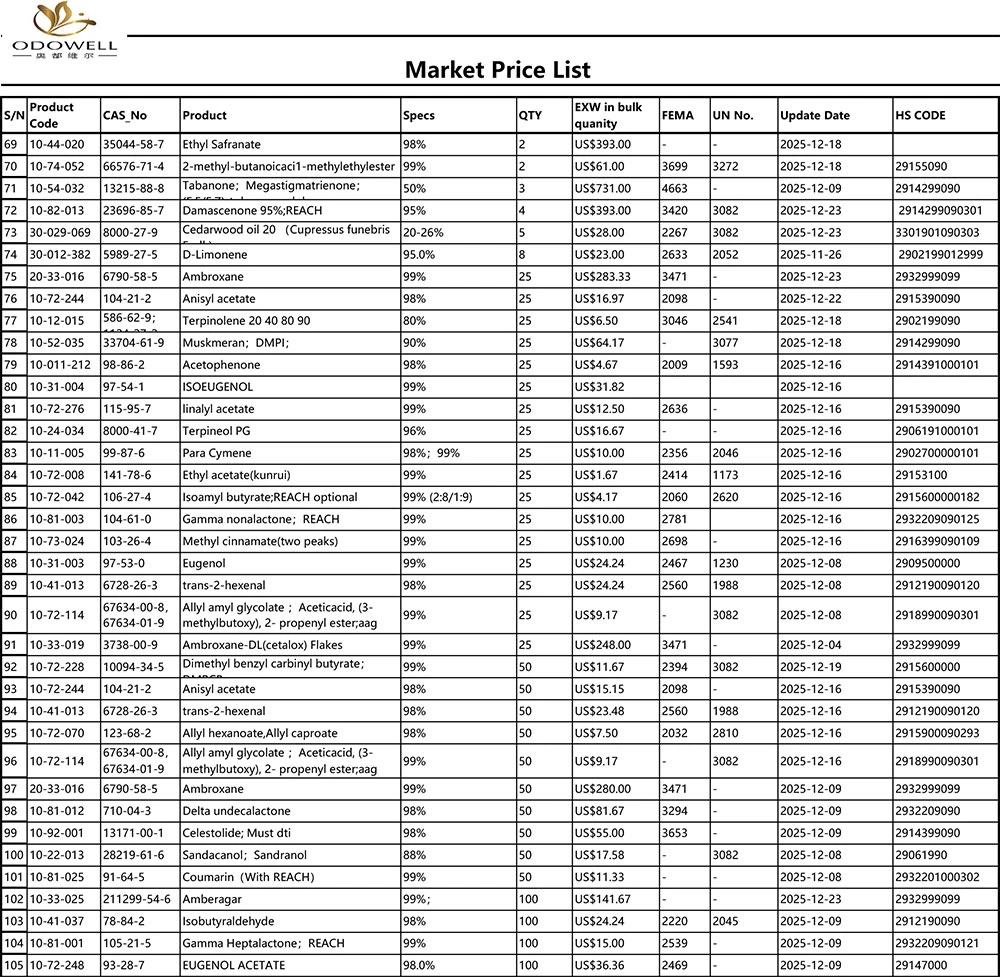 Allyl Cyclohexyl Propionate – ester ananasowy firmy ODOWELL zapewniający jasne, długotrwałe owocowe zapachy
